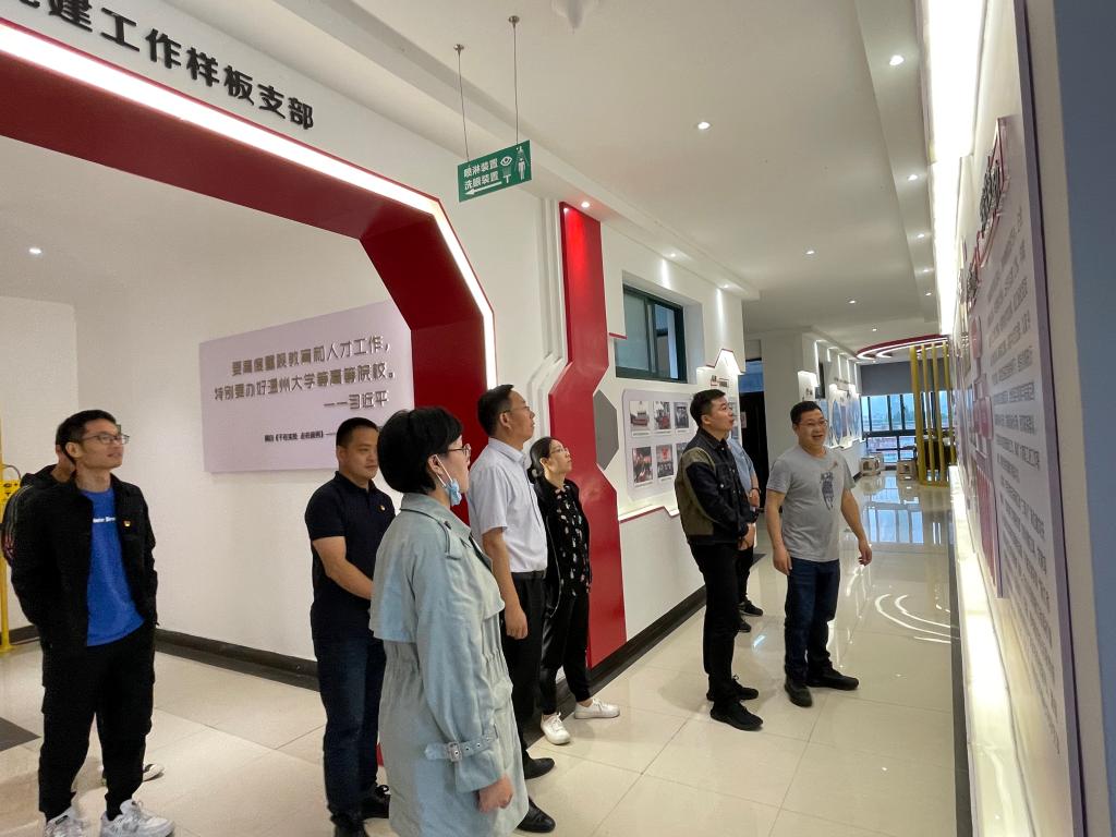 陈贤新副书记一行参观了公司“全国党建工作样板支部”党建文化长廊,查看了公司无机化学实验室及工作开展情况。会上,双方就全国样板支部培育创建方案与工作思路,以及社会服务、支部联合共建、党建+、本科生教学与科研等方面进行了广泛深入的交流。