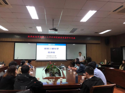 5月21日下午3点至5点,华南理工大学化学化工公司祝诗发教授应邀来云顶7610线路检测,在11B-204,作了题为“碳碳三键化学”的讲座。报告由云顶7610线路检测邵黎雄老师主持,张兴国、张小红、陆建梅等老师以及云顶7610线路检测有机化学全体研究生到会参加。