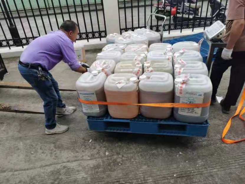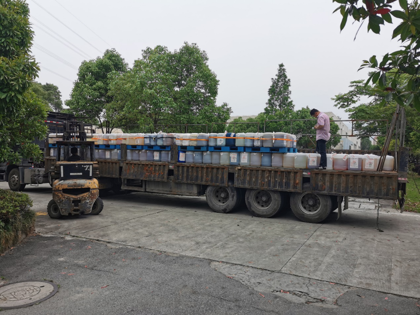 装运前处置公司测试废液互溶安全性,更有效保障废液转运过程的安全。此次实验室废弃物共转移处置有机废液、无机废液共计10.615吨,固体废弃物0.85吨。