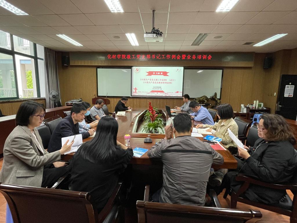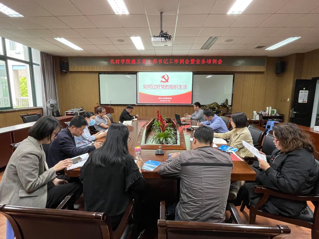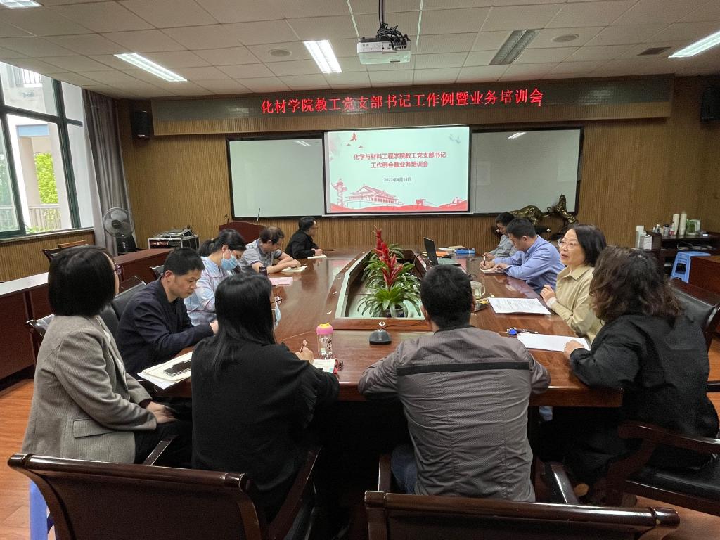 4月15日下午,化材公司党委在11B204会议室召开党支部书记工作例会暨业务培训会。公司全体教工党支部书记和支部委员参加会议,公司党委副书记周敬业、公司党委党务秘书、兼职组织员邹涌彬出席会议,公司党委书记刘吟主持会议。