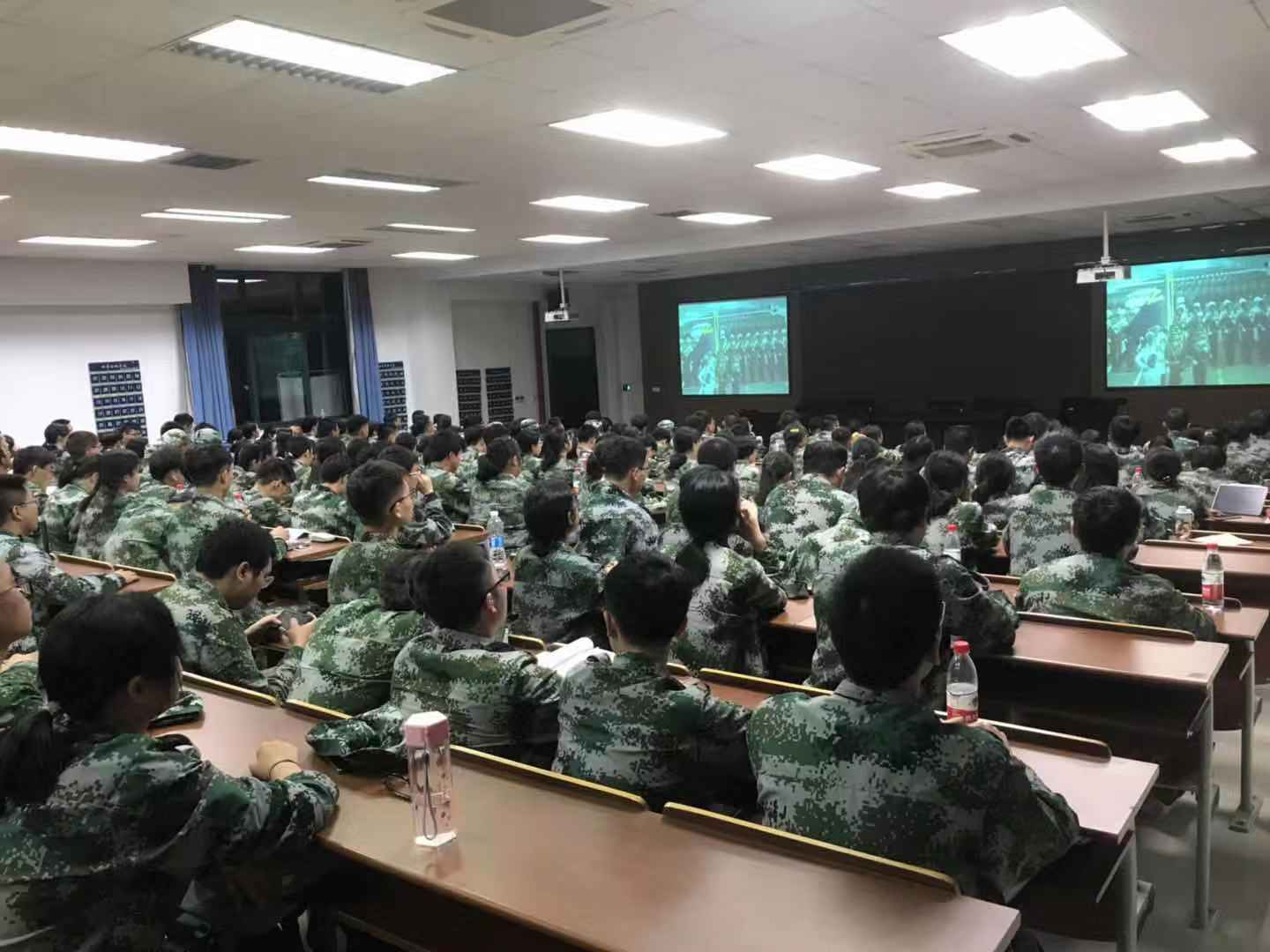 10月8日晚18点,2019届全体新生齐聚11C401,观看国庆70周年阅兵视频。本次军事理论课学习由班助丁超主持。