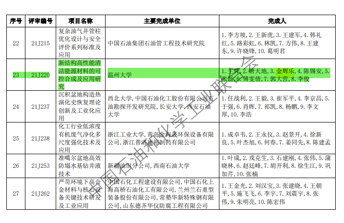 近日,2021年石化联合会科学技术奖、行业专利奖、第二届CPCIF- Clariant可持续发展青年创新奖优秀奖结果公布。公司王舜教授团队的成果“新结构高性能清洁能源材料的可控合成及应用研究”荣获“石化联合会科技进步二等奖”(主要完成人包括王舜、唐天地、金辉乐、陈锡安、 张磊、傅雯倩、郭大营、李俊),云顶7610线路检测吕晶晶教授获得第二届CPCIF- Clariant可持续发展青年创新奖优秀奖。