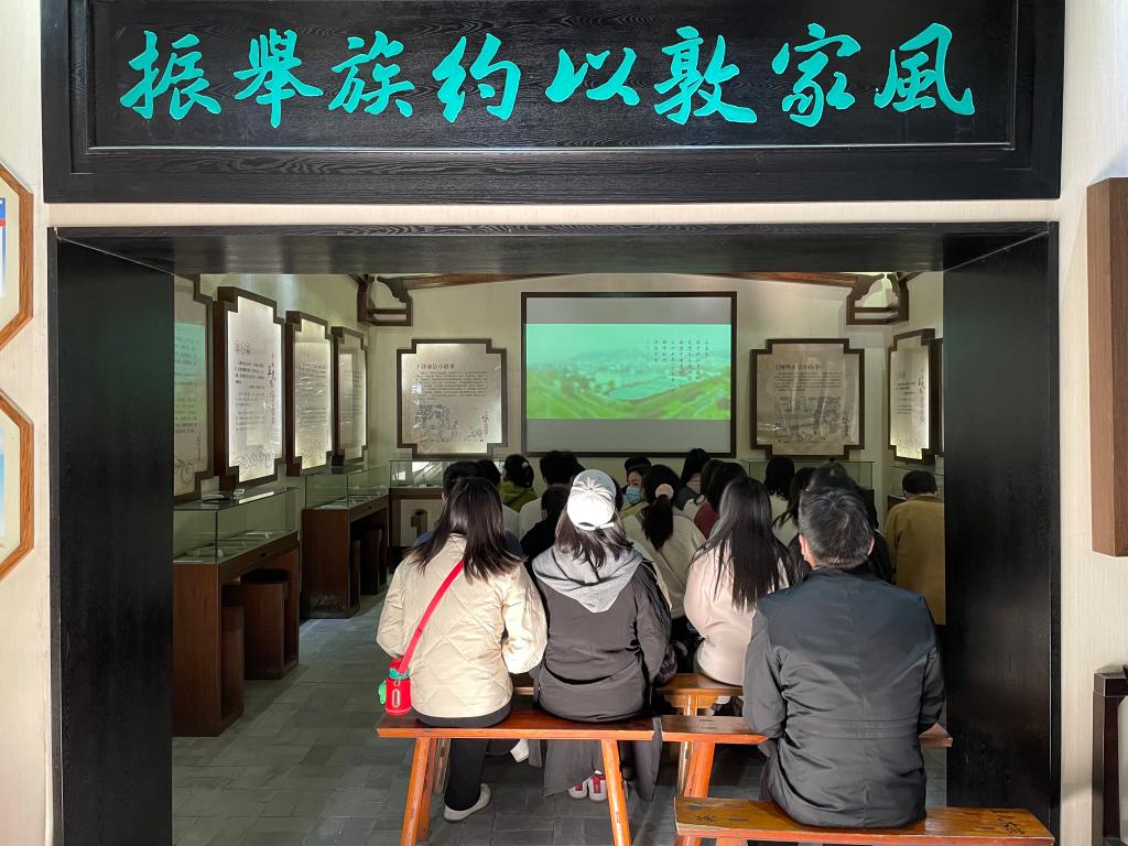 全体成员在讲解员的指引介绍下,观赏翁城、四门铁炮,登东门环海楼远眺,感受英桥王氏抗倭筑堡的家国情怀,而后又沿永昌堡河畔漫步新城街,途径御史巷,参观王诤故居都堂第和王氏宗祠,集体观看英桥王氏家风家训片《风清气正七百年》。“铁御史”王诤、“清廉典范”王继明等多位声名卓著的为民好官员生动地诠释了英桥王氏蔚为望族并经久不衰、百姓尊敬与爱戴的原因之一——清廉爱民的为官处事之道。同时这与《王氏族约》对族人的教化和训导,以及良好家风的代代传承大有关系。