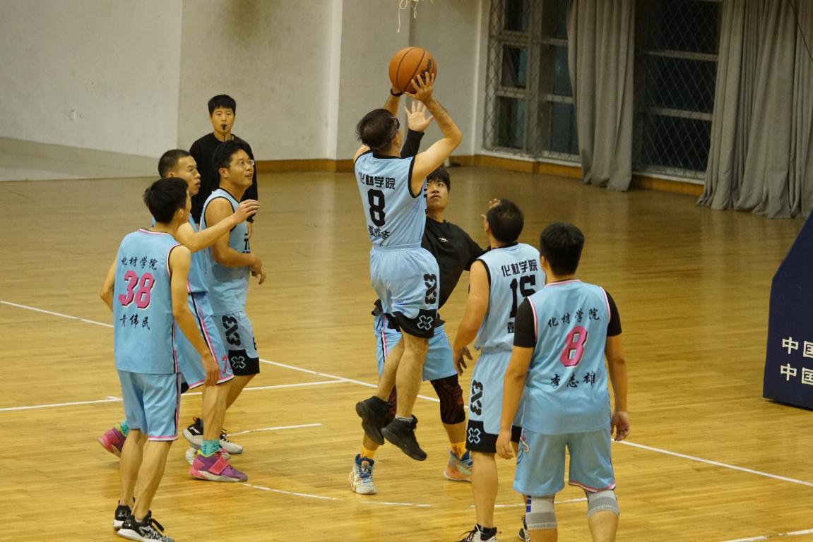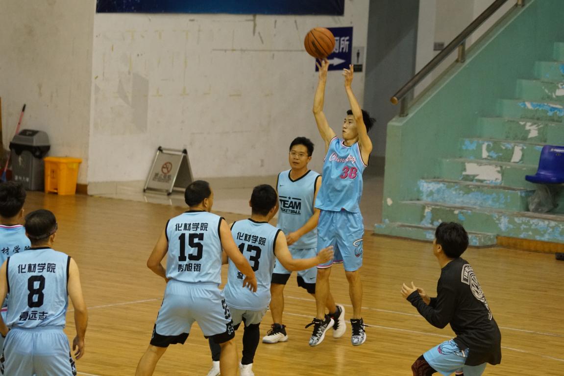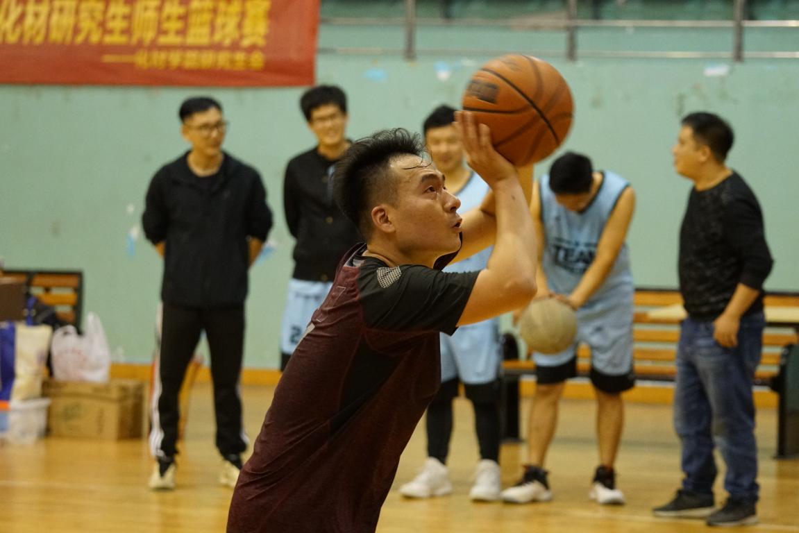 比赛开始前,双方在各自半场认真地热身,期望能在比赛中大显身手,赛场气氛很快地活跃起来。随着裁判一声哨响,球员们迅速就位跳起争球,研究生队凭借体能优势向教师队发起猛攻,而教师队攻防有度、稳扎稳打,凭借精湛的球技,丰富的经验,紧紧咬住比分不放松,中场结束时,研究生队以48:46的比分暂时领先。
