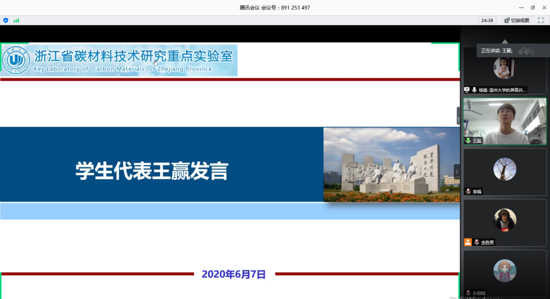 6月7日,浙江省碳材料技术研究重点实验室举行了第八届“科研之星”线上颁奖典礼。实验室全体师生出席本次会议。