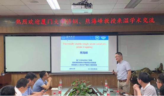 2021年6月6日上午,厦门大学化学化工公司熊海峰教授应邀来到云顶7610线路检测,在11B-204会议室作了题为“Thermally-stable single atom catalysts: atom trapping”讲座。报告由云顶7610线路检测王舜经理主持,陈锡安副经理、以及各位青年老师、研究生、本科生到会参加。云顶7610线路检测王舜经理对熊海峰教授的到来表示热烈欢迎,并向师生介绍了熊海峰教授的基本情况。