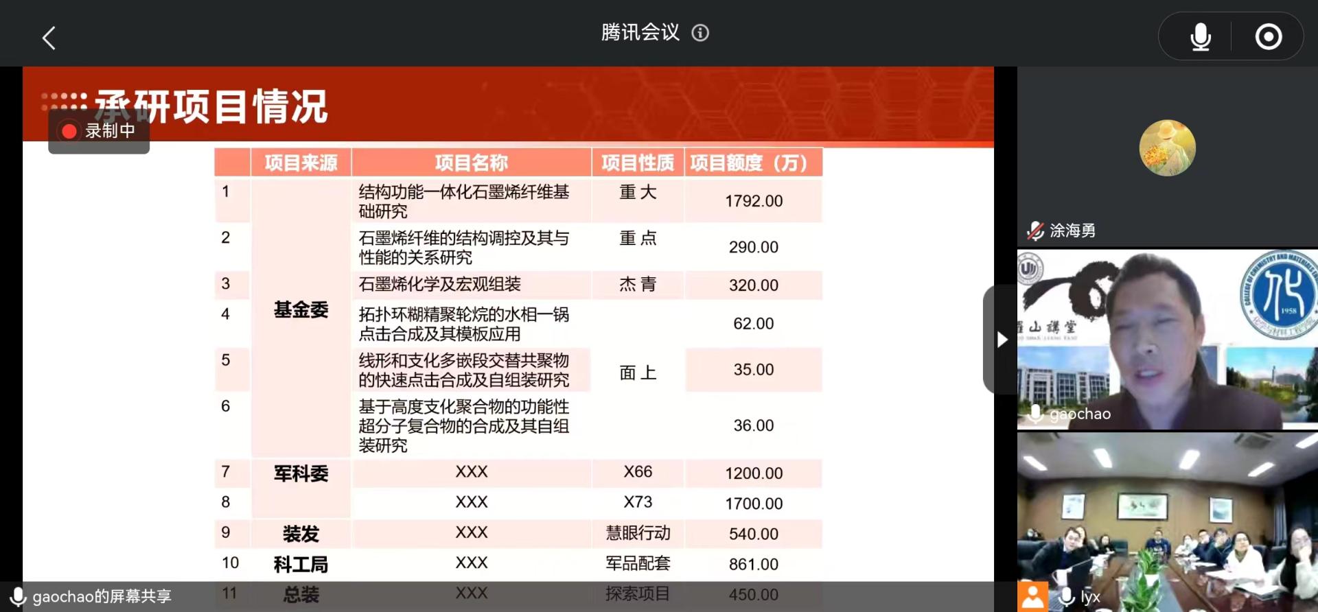 为更好推进党建和业务工作深度融合,促进团队建设不断发展,12月06日晚上20:00,浙江大学高超教授应云顶7610线路检测杨植经理邀请云做客瓯江学术论坛,作了题为“国家基金申报浅谈”的线上讲座。本次讲座以线上线下相结合的方式举行,会议由杨植经理主持,公司20余位青年教师在云顶7610线路检测11B-208会议室线下参加,线上于腾讯会议同步展开,公司以及其他高校100多位同仁在线参加。杨植经理首先对高超教授的到来表示热烈欢迎,并向老师们介绍了高超教授的基本情况。高超系浙江大学求是特聘教授、博导,国家杰出青年基金获得者、浙江大学高分子科学研究所所长。长期从事石墨烯化学与组装材料等方面的研究。在Science, Sci. Adv., Nat. Commun., Adv. Mater.等期刊发表SCI收录文章240余篇。承研基金委重大、重点、杰青、面上,国家重点研发计划课题,军科委基础加强等项目十余项。相应成果打通了氧化石墨烯“料-材-器-用”全链条发展通路,完成了78项氧化石墨烯及其宏观组装成果相关专利权的转让,转让金额超2000万元,建成了全球首条获得国际石墨烯产品认证中心(IGCC)认证的单层氧化石墨烯生产线。曾获首2021年度浙江省自然科学奖一等奖、届钱宝钧纤维材料青年学者奖、全国发明展览会“发明创业奖项目奖”金奖等荣誉。