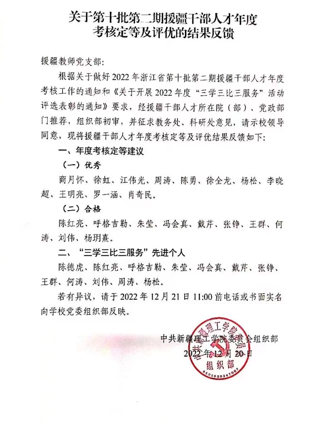 自来到新疆理工公司担任能源化学工程学科带头人以来,徐全龙牢记进疆初心使命,积极落实援疆教师“传帮带”职责,结合自身专长找准结合点,有力地支持了受援单位新疆理工公司能源化工工程公司的工作。在教学方面,除承担三门课程的教学任务和本科生毕业设计指导工作以外,还组织多次教学示范课。同时,他担任公司教学督导,先后听课评课近60节次,为帮助受援单位青年教师“站稳讲台”提供了诸多建设性意见,他指导的青年教师更是荣获教师创新大赛国赛三等奖和省赛一等奖;在科研方面,他注重科研团队建设,协助受援单位教师成功申报自治区科研项目7项,并指导发表SCI论文2篇,在全校进行科技论文撰写汇报;在团队建设方面,他带领相关教师进行“李家明院士工作站”和“材料化学”新专业的申报工作,均顺利获批。此外,徐全龙积极发挥两校间的纽带作用,努力促进两校课程资源的共享和科研上的交流,切实加强了两地高校间的交流互动和相互合作。
