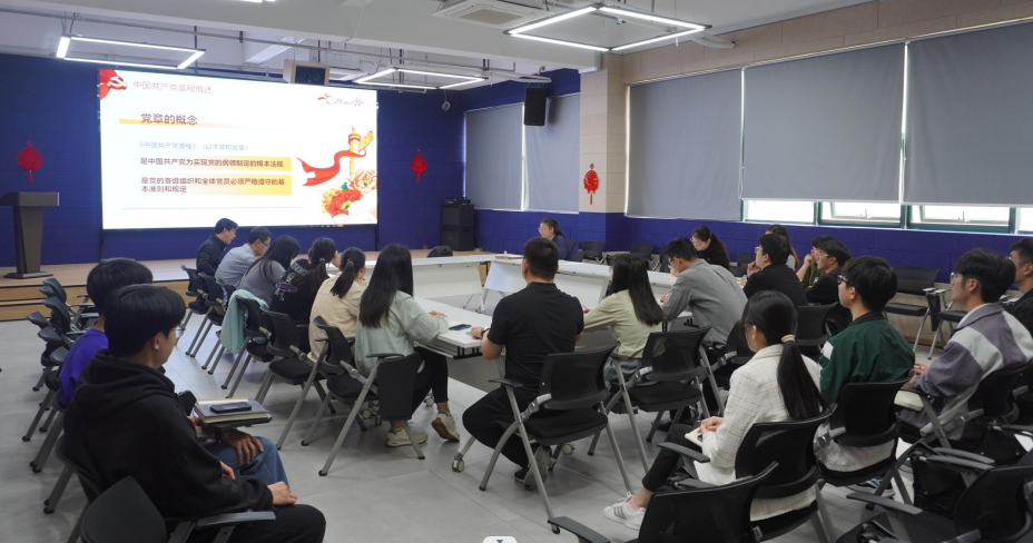 会后,师生党支部联合开展了“学党章、强党性、作表率”主题党日活动,公司党委组织员陈旭老师带领大家重温入党誓词,以上党课的形式,与支部党员共同学习了新修改的《党章》。