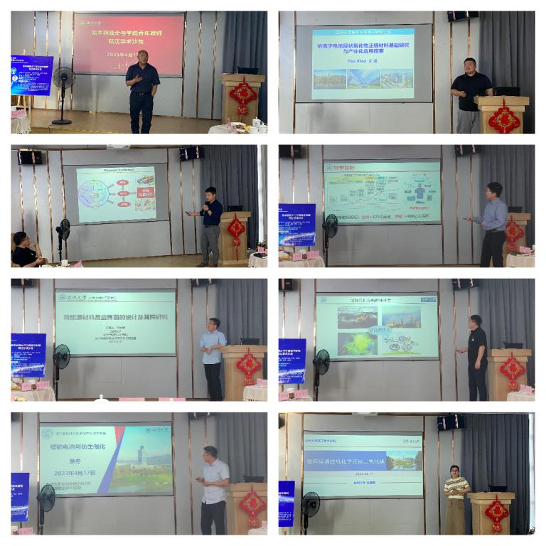 栾院士首先强调应用与基础研究的紧密联系,科研过程中也需注重担当、诚实、责任感、正直、教育、谦虚等基础价值。肖遥、李龙、陈亦皇、郭大营、孟格、蔡冬、吕晶晶七位青年教师分别带来了《钠离子电池层状氧化物正极材料基础研究与产业化应用探索》、《炔烃的转化和不对称的合成》、《柔性多功能可穿戴式能量转换与储存材料及器件》、《新能源材料反应界面的设计及调控研究》、《设计多功能单原子催化剂促进复杂能源转化反应》、《锂硫电池与仿生催化》、《微环境调控电化学还原二氧化碳》精彩报告。