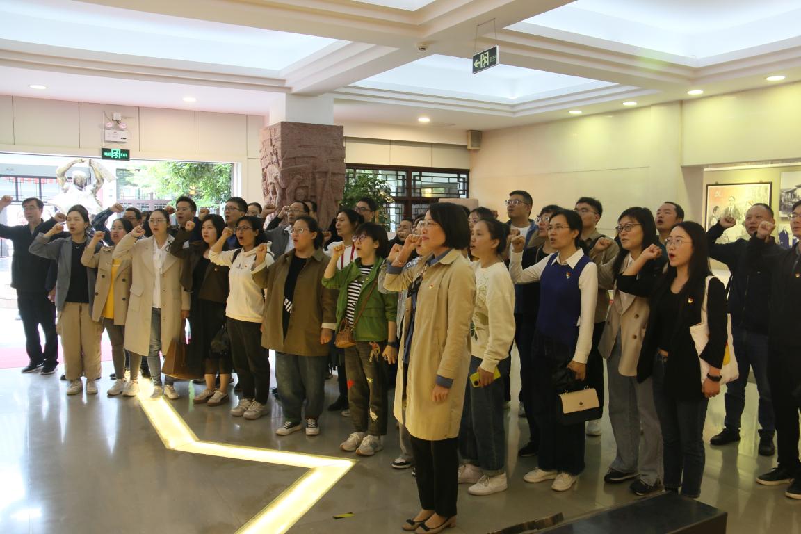 在革命烈士纪念馆,全体党员怀着崇敬的心情,学习了谢文锦、刘英等100多名革命先烈的英勇事迹及遗物史料。一幅幅照片,一件件实物,一幕幕场景,生动而又深刻地展现了革命先烈们抛头颅、洒热血,为伟大的革命事业进行艰苦卓绝斗争的光辉历程。先烈们的无私奉献和牺牲精神深深感动着在场党员,大家深受触动,深受教育。在鲜红的党旗前,全体党员高举右手,怀着对革命先烈的崇敬,庄严宣誓,重温入党誓词。