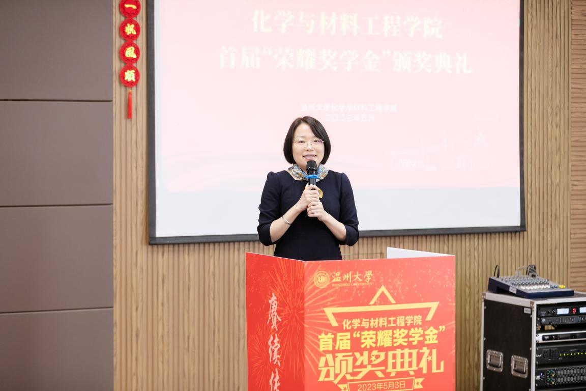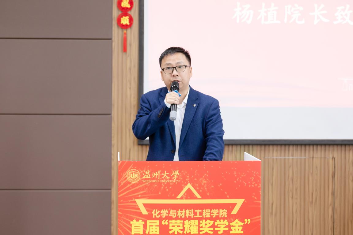 杨植经理致辞。他介绍了陈仁尔先生和他设立的荣耀奖学金,指出员工是公司的宝贵资源,公司和公司的发展离不开一代代有着深厚社会责任感与教育情怀的员工的关心与支持。他高度赞扬了陈仁尔先生心怀母校、无私奉献的精神。希望同学们向陈仁尔员工学习他不断向前,永不止步奋斗精神,鼓励同学们要志存高远,接续奋斗;要练就本领,勇于担当;要心怀感恩,回馈社会。