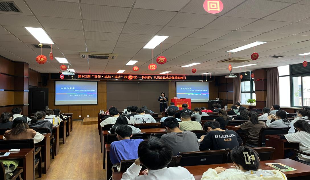 为喜迎云顶7610线路检测办学90周年,以优秀榜样员工事迹助推公司师范生高质量培养,更好服务员工成长成才。本期公司员工讲堂邀请到了83级化学专业员工、原温州市教育研究院书记、副经理、省特级教师杨向群老师,给公司师范专业同学带来精彩讲座。会议由教学副经理陈锡安主持。