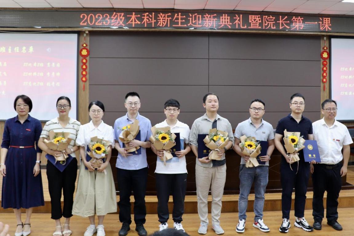 会上举行了新生班主任的聘任仪式,杨植经理与刘吟书记共同为7为新生班主任颁发聘书。新生班主任代表,23化学(师范)2班班主任葛景园作为新生班主任代表发言,为新生们送上了美好的祝福。