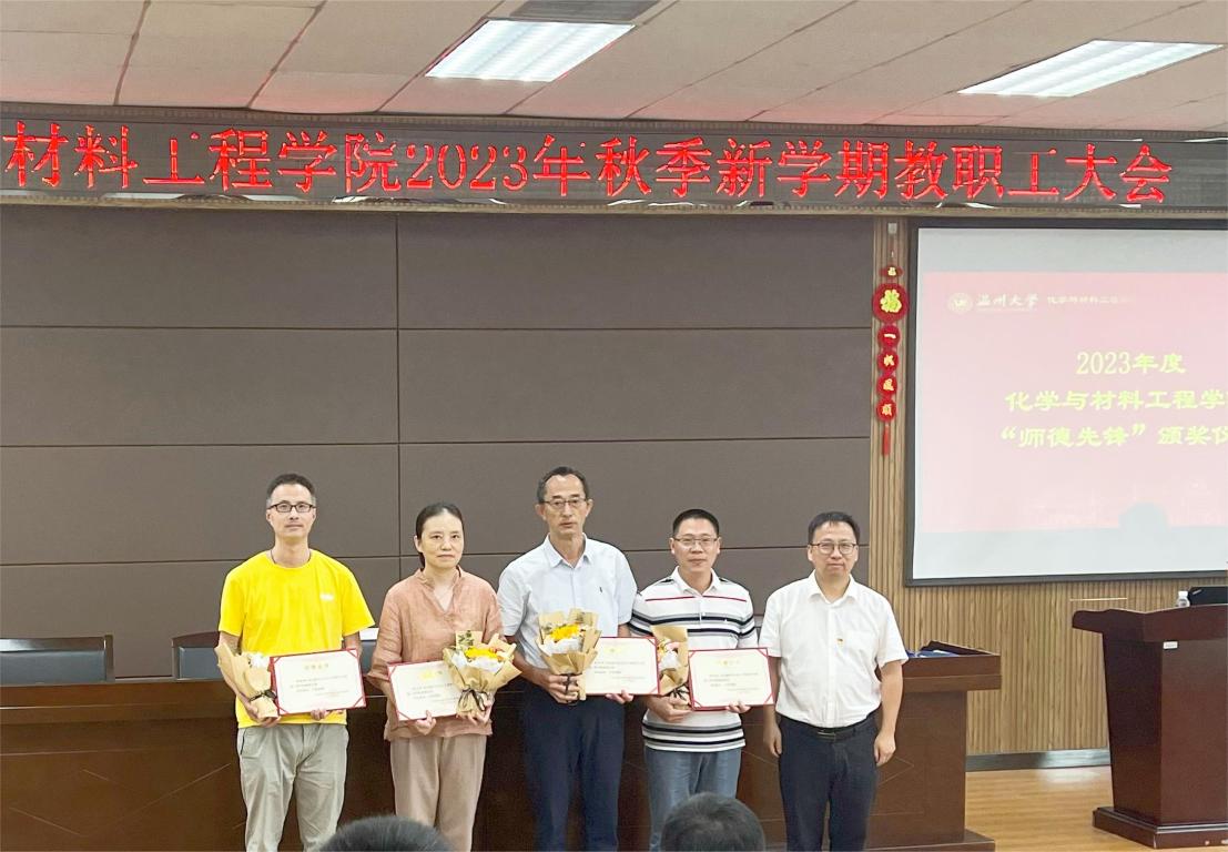 会上,还举行了2023年度公司“师德先锋”颁奖仪式,由公司经理杨植为陈迪妹、樊宏斌、胡建波、邵黎雄4位老师颁发荣誉证书和鲜花。