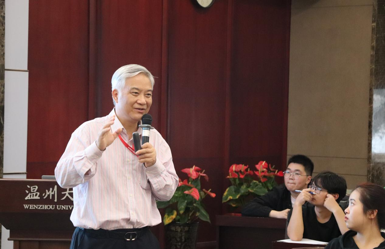 在交流提问环节,唐本忠院士与在场的师生就多项科学问题进行了深入的探讨,耐心的解答了提出的专业学术问题,其深厚的科研功底、幽默得体的言谈赢得了在场师生阵阵热烈的掌声。