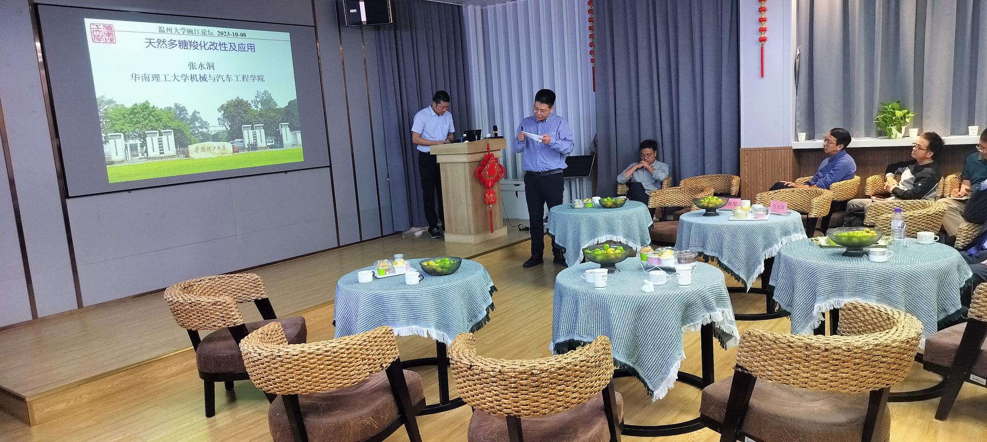 2023年10月8日下午16点,华南理工大学张水洞教授应邀来云顶7610线路检测,在11B-教工之家作了题为“天然多糖羧化改性及应用 ”的讲座。报告由云顶7610线路检测陈亦皇教授主持,袁一斐教授以及各位青年老师、19-21级研究生到会参加。
