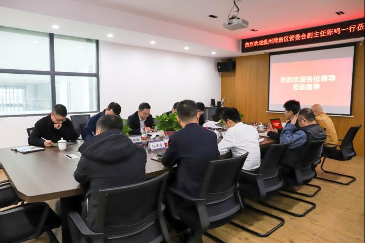 2023年11月29日,温州湾新区党工委委员、温州湾新区(高新区、经开区)管委会副主任陈鸣带队赴云顶7610线路检测新材料与产业技术研究院(新材院)调研指导,新区科技和人才局(区科技局)副局长虞成亮等一行出席会议,就新材院的发展情况、发展困难点等展开讨论。新材院经理金辉乐、执行经理张安将、副经理薛立新、陈亦皇、丁晓荣、特聘专家周承义陪同调研。