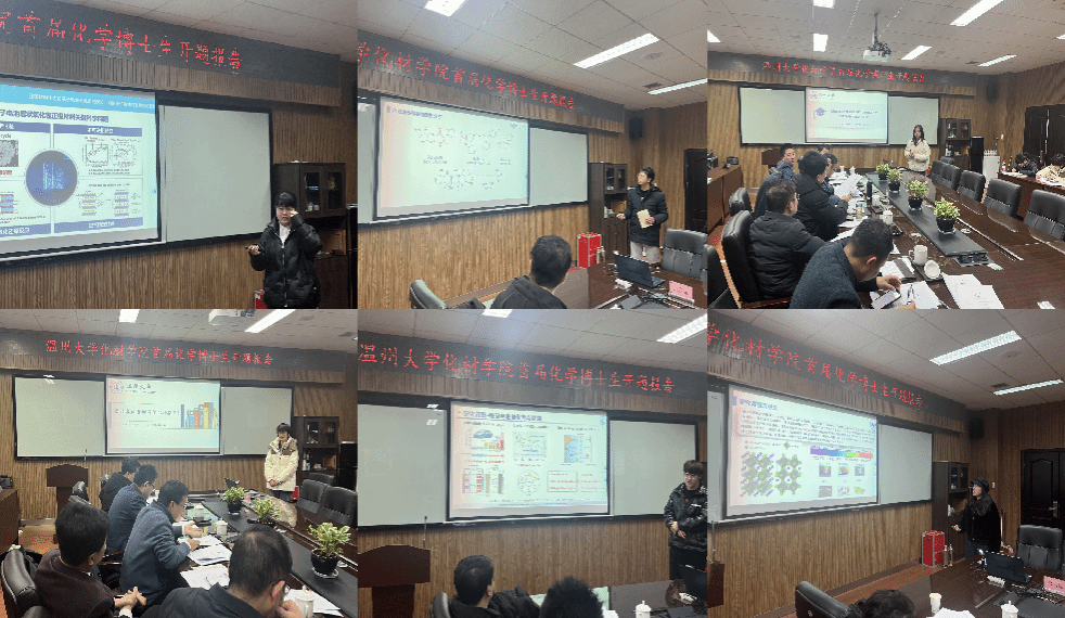 本次参与报告的六位博士研究生为2022级化学专业员工,他们分别从研究背景、研究思路、研究进展、研究计划等方面进行了开题汇报,着重阐明了选题的创新点、研究进展及后续计划。专家组针对每一位同学的开题报告,从科学性、聚焦性、前沿性、创新性、细节性等方面进行了全面而又深入细致指导,并指出了开题报告中存在的问题,并就充实选题内容、扩展研究视野、丰富研究思路、完善研究逻辑提出了针对性建议。
