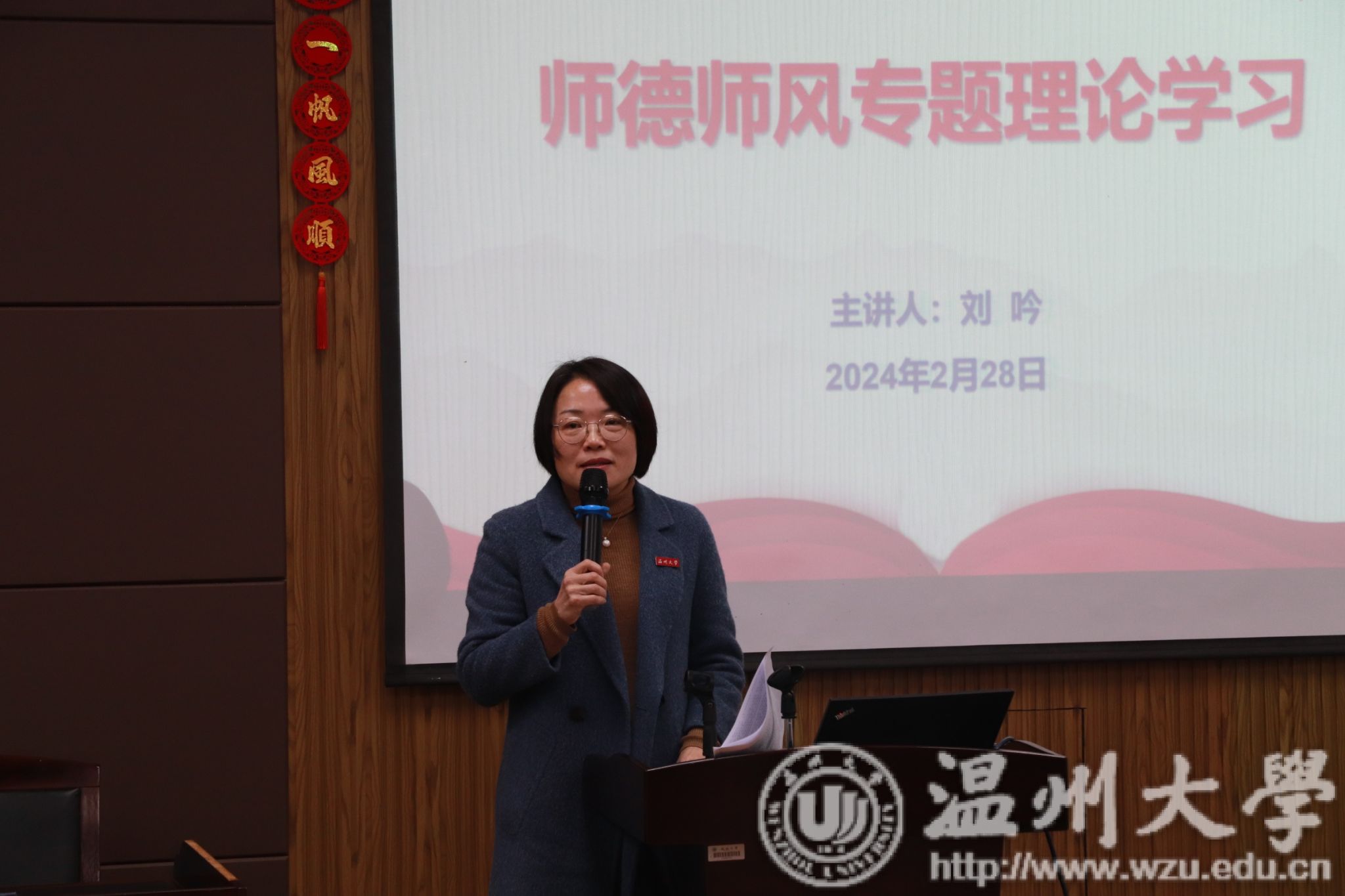 会上刘吟还领学了浙江省教育厅《关于进一步加强和改进新时代师德师风建设的实施意见》,她要求院教职工要深入学习落实好师德师风建设相关文件精神,弘扬高校教师道德风尚,以实际行动担负起为党育人、为国育才的使命,做好员工的引路人。