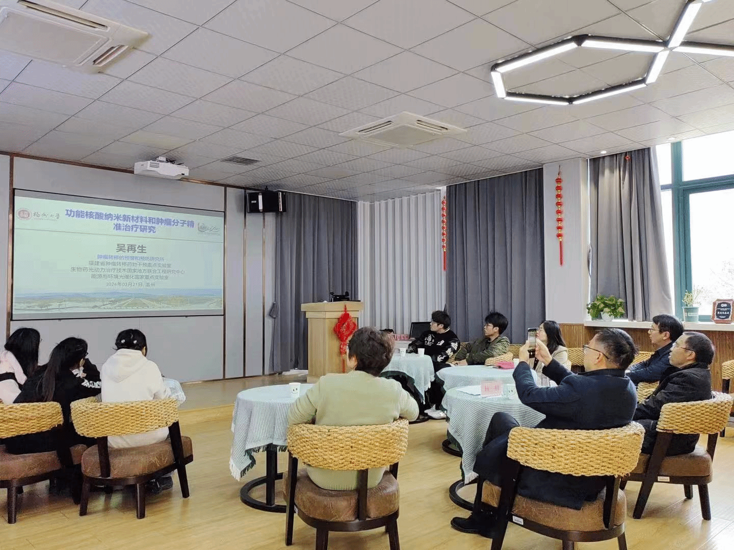 吴再生教授的学术报告吸引了参会教师的浓厚兴趣,提升了公司师生对核酸纳米机器、细胞成像探针、精准纳米医药和化员工物传感四个方面的理解,讲座过程中气氛活跃。讲座后,吴再生教授与公司教师和员工进行了深入交流,激发了参会人员对该领域的研究兴趣。