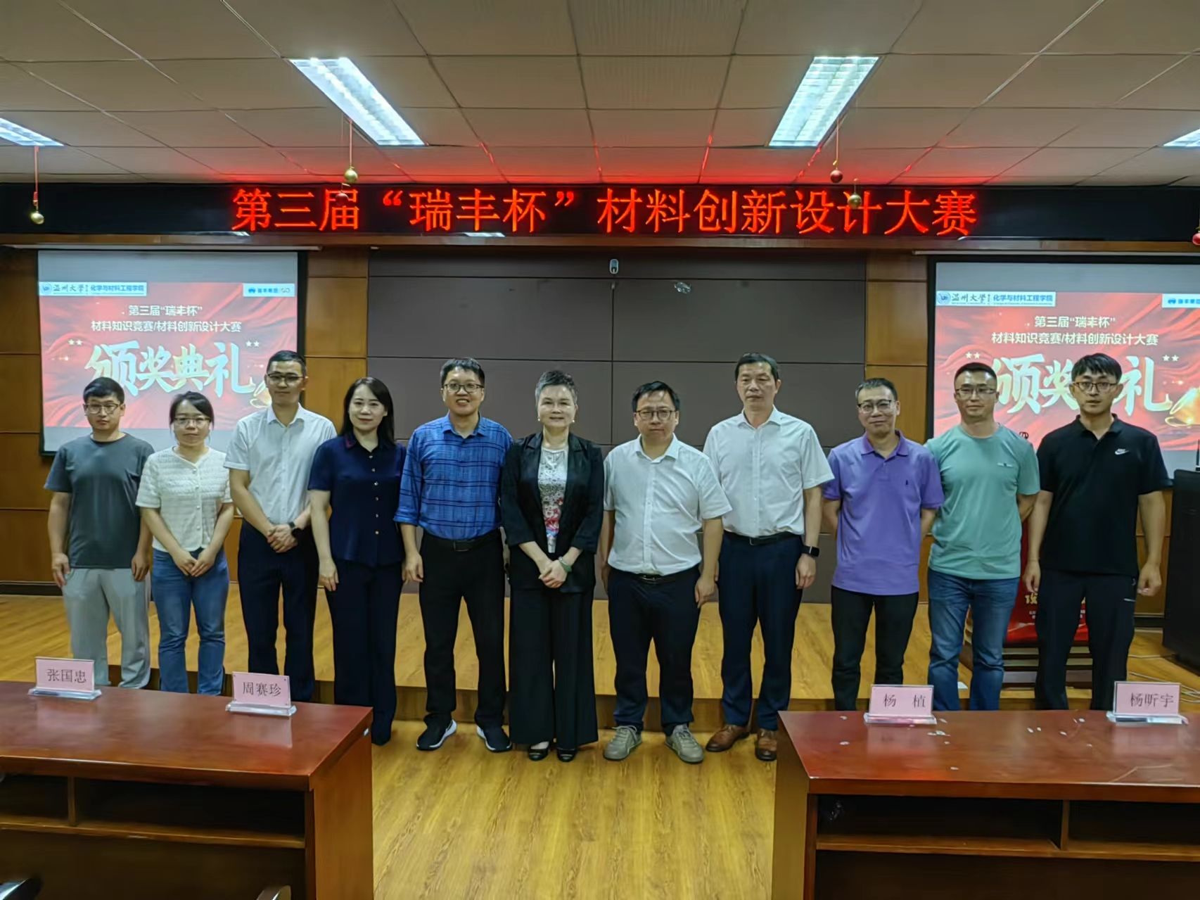 最后举行了材料创新设计大赛以及材料知识竞赛的颁奖仪式,到场嘉宾为获奖同学颁奖。本次大赛的成功举办,是公司在校企合作培养新型实用型人才模式探索之路上一次重大突破。未来公司将与瑞丰控股集团有限公司进行深度合作,落实“企业命题,高校解题”的校企合作指导思想,让高校专业技术进一步回馈社会。