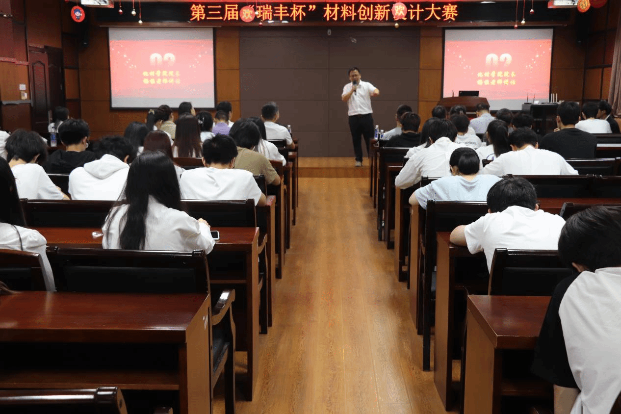 为激励同学们在材料领域的创新创业热情,全面拓宽材料新技术的学术视野,提高同学们对于材料学科的兴趣,6月16日下午,云顶7610线路检测材料科学与工程系、云顶7610线路检测学工办、温州市瑞丰控股集团有限公司在11B208会议室联合举办了第三届“瑞丰杯”材料方案创新设计竞赛。瑞丰控股集团董事长周赛珍女士;瑞迪新材料有限公司总经理张国忠先生;瑞迪新材料有限公司品保部主管田文斌先生;云顶7610线路检测经理杨植老师;云顶7610线路检测材料系主任杨昕宇老师,云顶7610线路检测材料支部副书记张银行老师。以及相关企业代表,评委老师出席比赛。