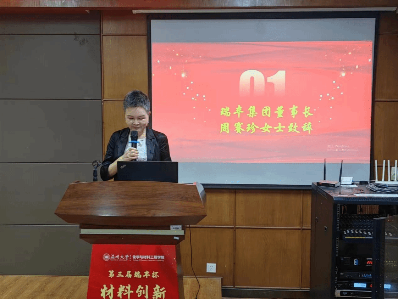 温州市瑞丰控股集团有限公司董事长周赛珍女士为本次比赛致开幕辞,周赛珍女士简要介绍了设立奖学金的初衷,以及它对公司和员工的意义,并对参赛的员工表示鼓励,希望借此机会充分发挥他们的创造力和潜力。