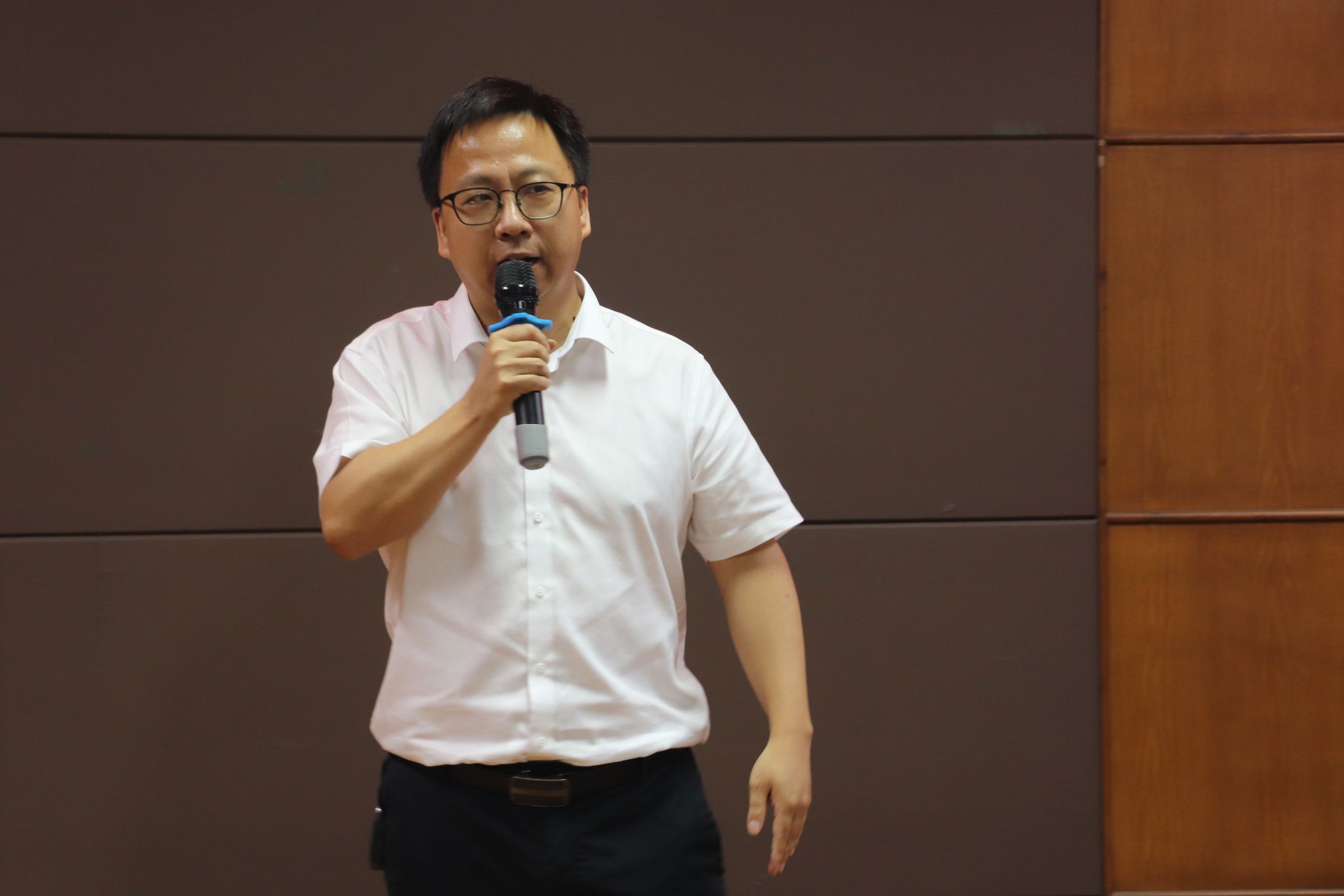 杨植经理发表讲话,他向到场的嘉宾表示最热烈欢迎,并对瑞丰集团的支持表示衷心感谢。他表示本次大赛不仅是一个展示创新成果的平台,更是一个激发思维、交流思想的舞台。希望所有参赛的员工们,勇敢地展示想法,用智慧和热情点燃创新的火花。