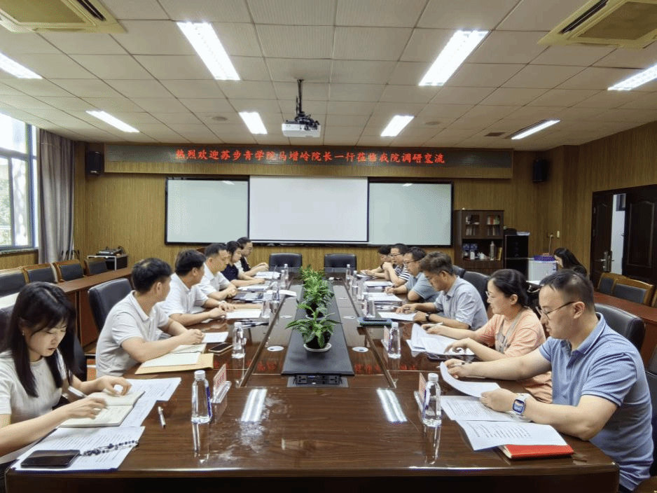 2024年7月2日下午2时,苏步青公司执行经理马增岭、党总支书记潘从义以及各科室代表一行6人来院调研交流。公司经理杨植、党委书记邹超、副经理张礼杰及化学系和各科室代表共同出席会议。