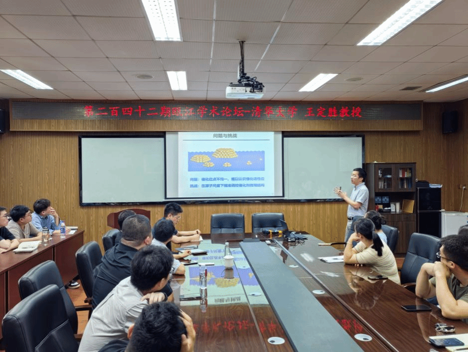 报告结束后,王定胜教授进行现场答疑。现场师生对于设计耐用的酸性OER催化剂前沿领域产生了浓厚的兴趣,参加的老师和员工提出了多个相关问题,王定胜教授对提问进行了详细解答,并同参会的老师进行了深入探讨。这次讲座让师生们了解到可以通过构建单原子活性位点电子结构与催化性能的构效关系直接设计合成目标催化剂,为师生们在原子尺度下合理设计和优化催化剂提供了新的思路。