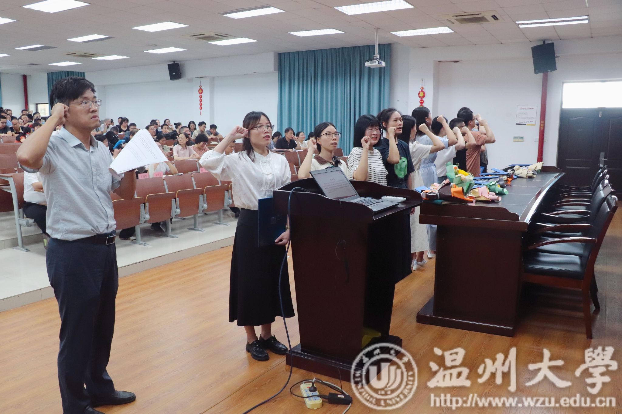 会上,举行了新教师入职仪式。邹超书记介绍了公司今年新教师引进情况,并请新教师逐一进行自我介绍。公司经理杨植为他们颁发入职纪念证书和鲜花,并在邹超书记的带领下,全体新教师进行了入职宣誓。