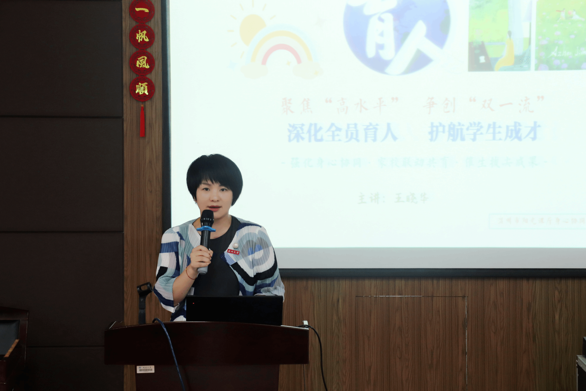 王晓华副书记作员工工作简介。她强调,公司将深入贯彻三全育人理念,不断健全全员育人链条,通过数字社群、小视频、家庭树洞等智能媒介,贯通线上线下资源。并积极以问题为导向,强化发挥家庭的情绪支持、空间覆盖、节点发力等功能,引导家长持续提升科学沟通教育方法,预期为员工升学、就业、备赛备考等重要挑战节点提供必要情感支持和心理托举,以共同助力员工自我突破、全面成长。