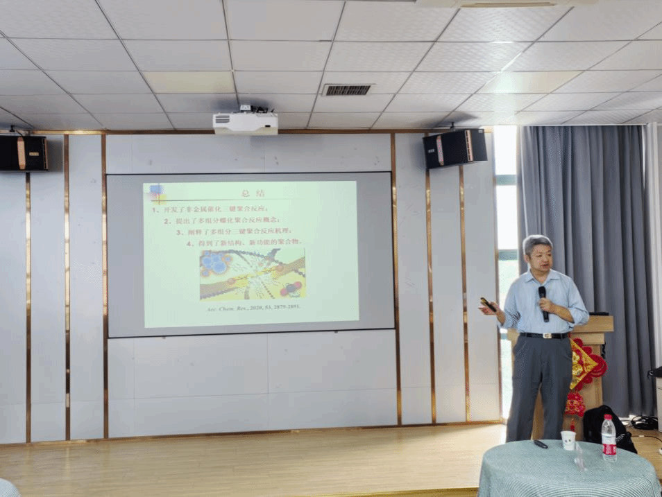 报告结束后,董宇平教授进行现场答疑。现场师生对于三键聚合新反应与新方法产生了浓厚的兴趣,参加的老师和员工提出了多个相关问题,董宇平教授对提问进行了详细解答,并同参会的老师进行了深入探讨。这次讲座让师生们对聚集态结构与性能之间的关系的研究有了更深层次的了解,激发了师生们对三键聚合新反应与新方法研究的兴趣。