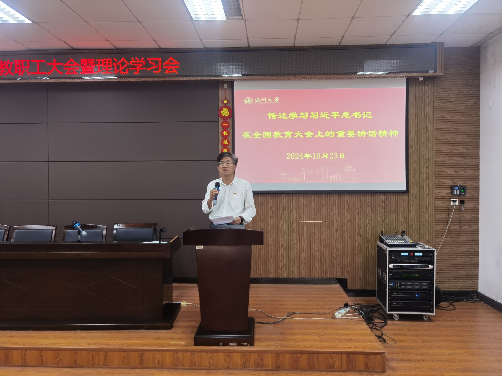 邹超为全体教职工上师德师风专题党课。首先他传达了公司关于秋季师德师风专题教育活动的有关安排,并深入解读了习近平总书记在2024年全国教育大会上的讲话精神。他强调教育是国家强盛和民族复兴的基础,每位老师要时刻明确自己是师德师风建设的主体,增强师德师风建设的责任感。他号召全体教职工要以教育家精神为引领,以高度的政治自觉、思想自觉、理论自觉、行动自觉,树师德、正师风、铸师魂、强师能,努力做好“四有”好老师,成为新时代的“大先生”。