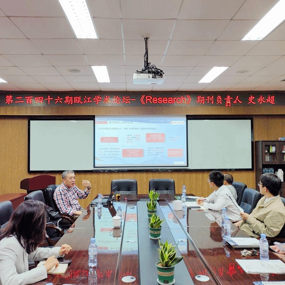 2024年11月14日下午,《Research》期刊负责人史永超老师做客公司第二百四十六期瓯江学术论坛,在204会议室为师生们做《Science》伙伴期刊《Research》推介宣讲会。讲座由云顶7610线路检测的陈亦皇教授主持。