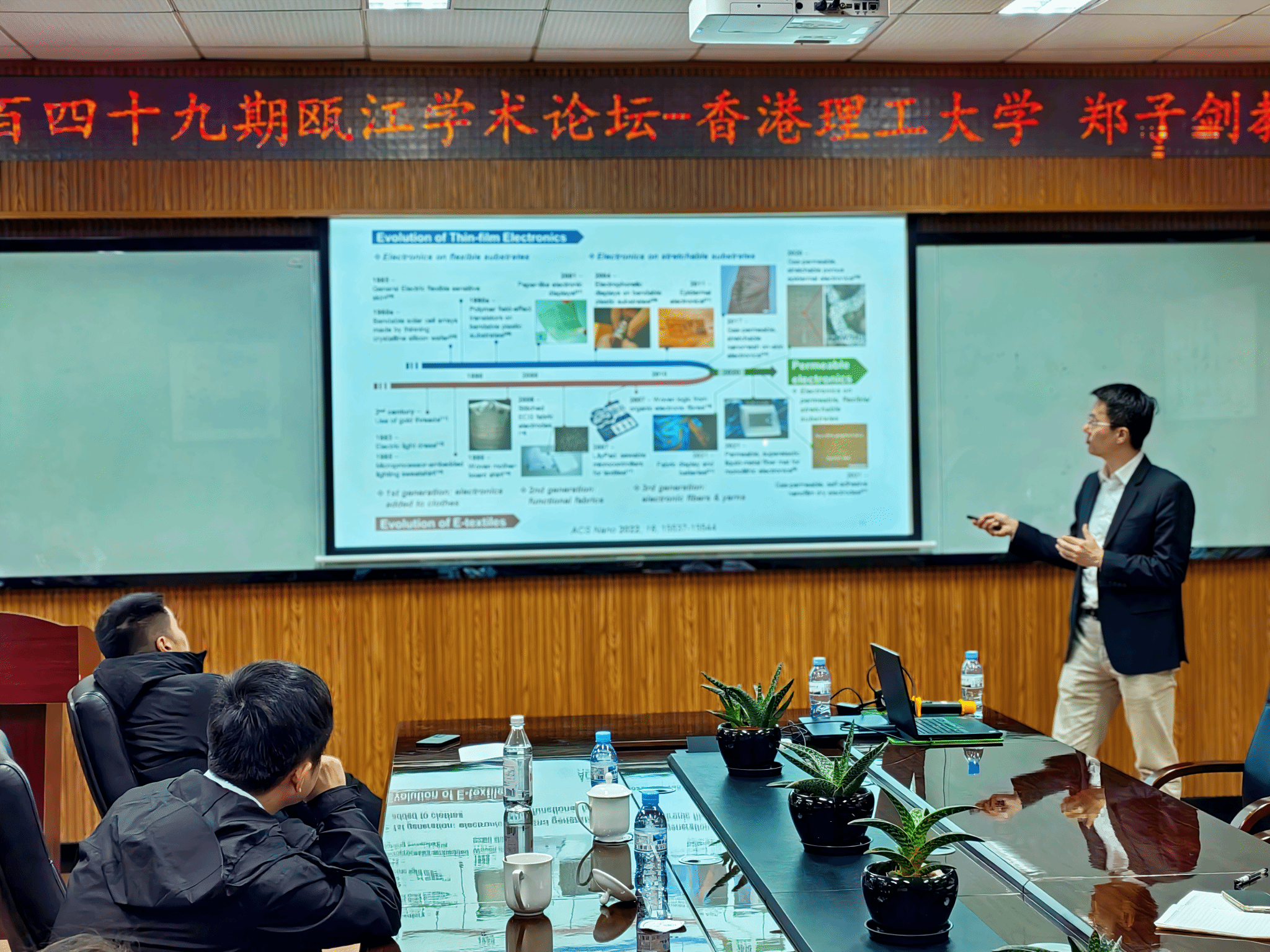 2024年11月29日下午,郑子剑教授做客公司第二百四十九期瓯江学术论坛,在204会议室为师生们做题为“透气柔性电子”学术讲座。讲座由云顶7610线路检测的张礼杰副经理主持。
