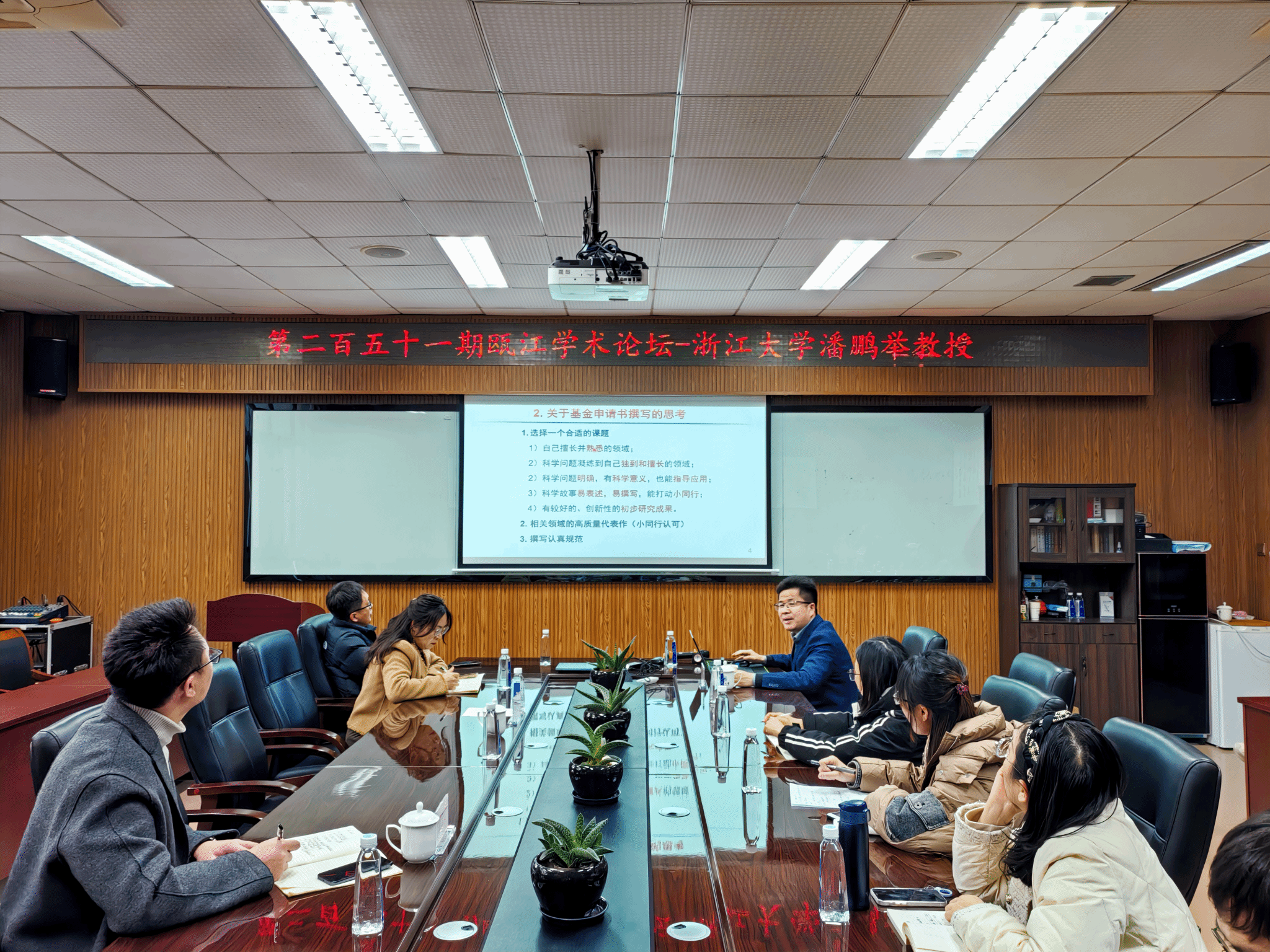 2024年12月26日下午,浙江大学潘鹏举教授做客公司第二百五十一期瓯江学术论坛,在204会议室为师生们做题为“关于科研与教学类项目申请的一些思考与体会”学术讲座。讲座由云顶7610线路检测副经理金辉乐教授主持。