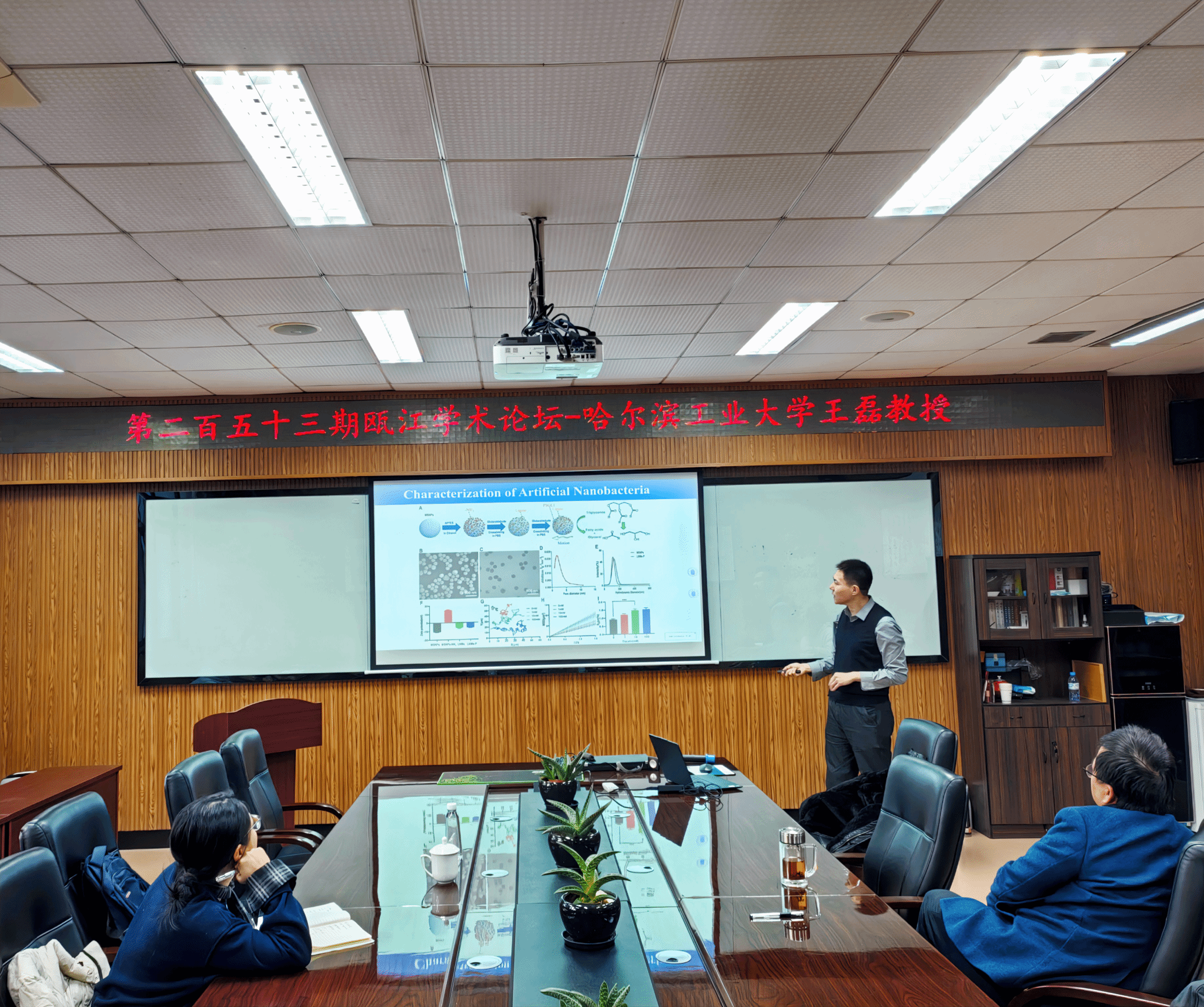2025年1月11日上午,哈尔滨工业大学王磊教授做客公司第二百五十三期瓯江学术论坛,在204会议室为师生们做题为“生物酶驱动人工细胞马达的设计及诊疗应用研究”学术讲座,讲座由云顶7610线路检测邓超博士主持。