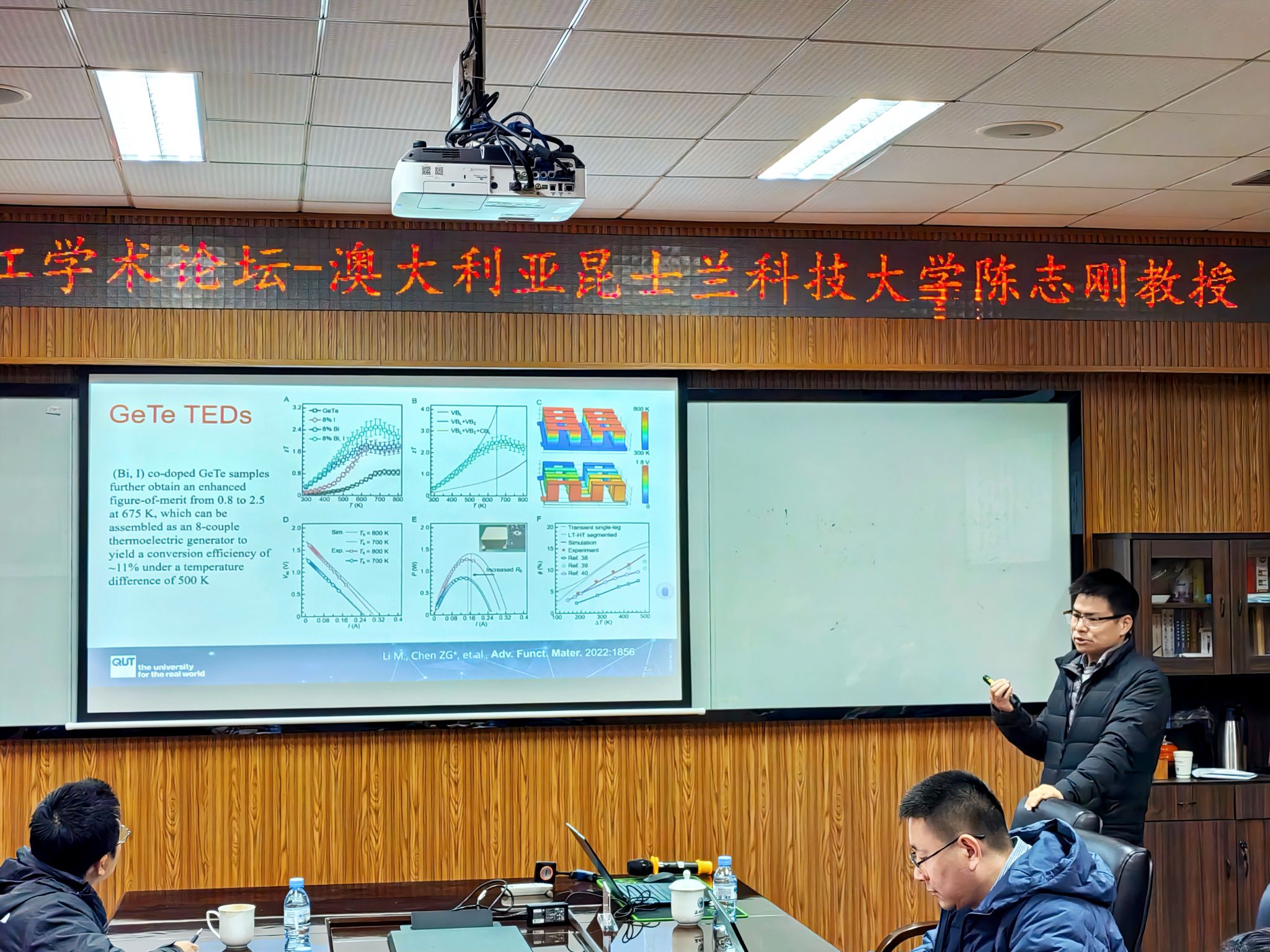 2025年2月23日下午,澳大利亚昆士兰科技大学陈志刚教授做客公司第二百五十六期瓯江学术论坛,在204会议室为师生们做题为“Zero-emission thermoelectrics for carbon neutrality”学术讲座。云顶7610线路检测副经理金辉乐及师生代表参加讲座,讲座由云顶7610线路检测金辉乐副经理主持。