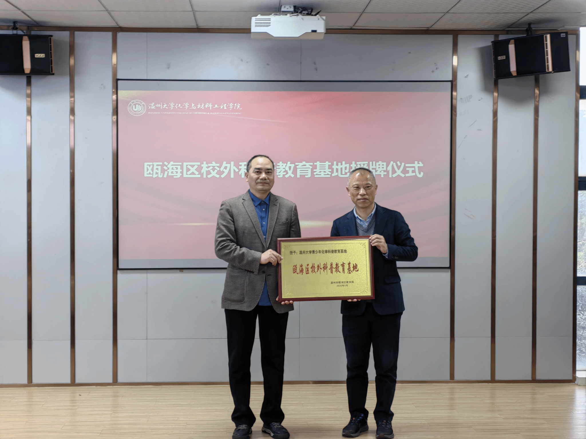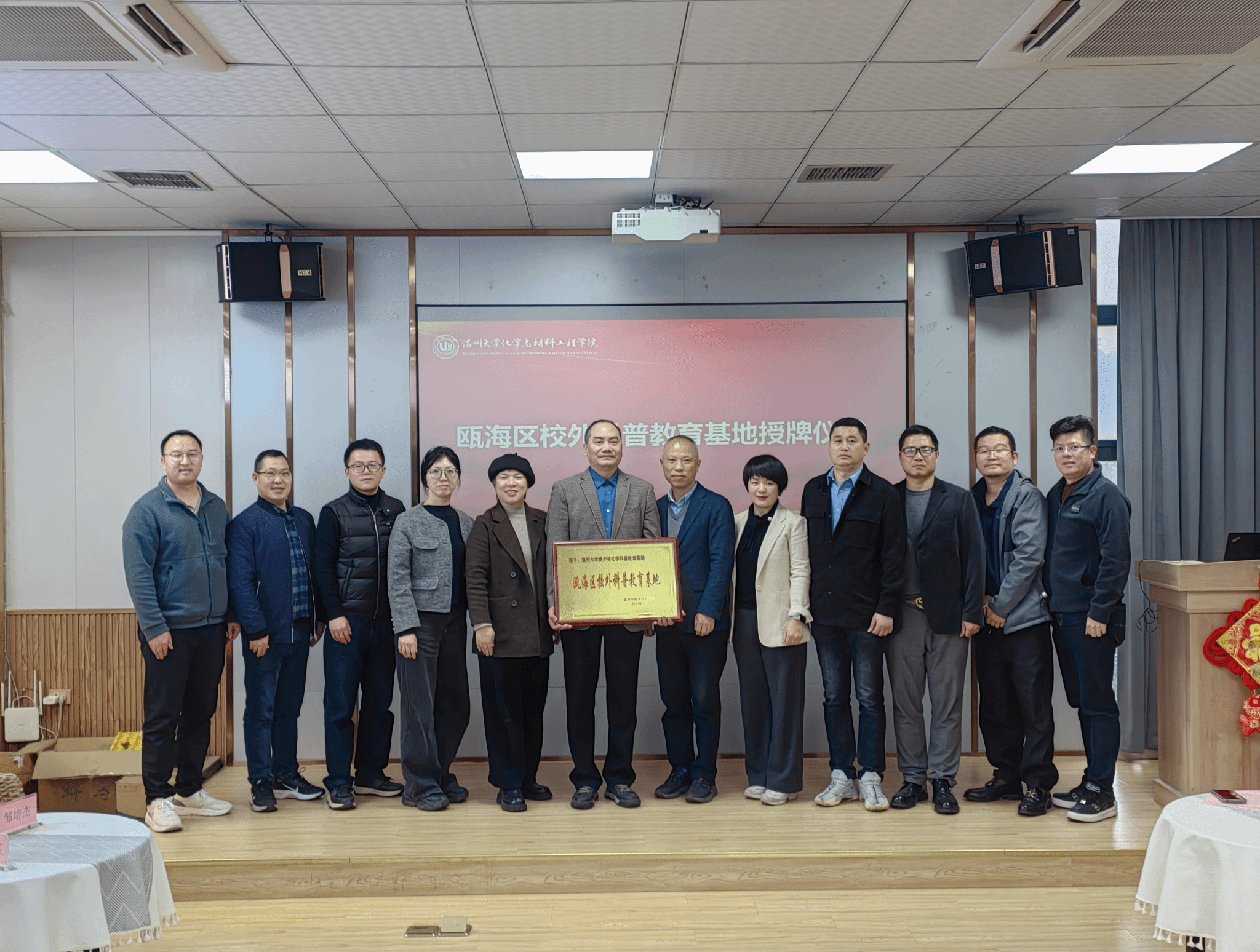 活动还举行了瓯海区校外科普教育基地授牌仪式。瓯海区教育研究院副书记董爱敏为公司“春风化雨”科普教育基地负责人张卫兵授牌。
