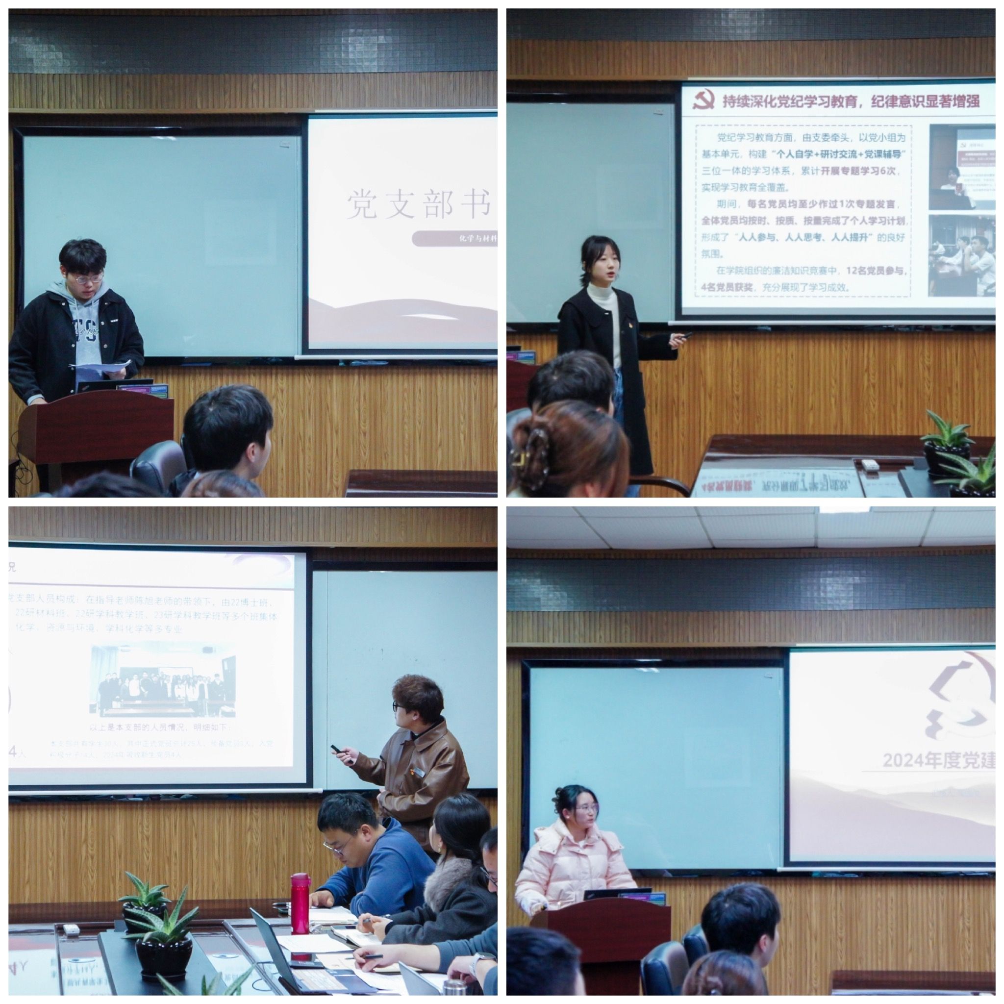 为深入学习贯彻党的二十届三中全会精神和习近平总书记关于党的建设的重要思想,巩固党纪学习教育成果,高质量落实公司第三次党代会决策部署,进一步加强党支部标准化建设,3月6日晚,公司2024年度员工党支部书记述职评议会于化材楼11B204会议室举行。公司党委副书记王晓华,公司专职组织员陈旭,各员工党支部指导老师参加本次会议,会议由公司学工办主任兼团委书记、员工党建工作指导教师邹涌彬主持。