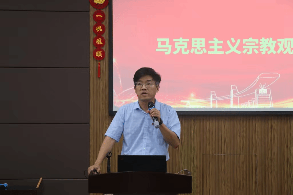 邹超书记从马克思主义宗教观出发,深入分析宗教的本质和作用,并详细解读了党的宗教工作基本方针。他指出,要全面贯彻党的宗教政策,学会运用马克思主义的科学世界观认识宗教的本质及其发展规律。同时,他还提到了非法宗教活动以及宗教和邪教本质上的不同,提醒同学们须加强对宗教极端主义思想的辨别和批判。结合习近平总书记的重要讲话精神,邹书记提出老员工应如何正确对待宗教的具体建议。他强调,老员工要时刻保持清醒头脑,提高自我认知能力和辨别是非的能力,同时要知法、懂法,抵制校园宗教传播,维护校园的和谐稳定。他希望同学们能拥有独立的精神世界和坚定的道德信念,树立正确的世界观、人生观、价值观,成就一个更加完整、真实的自我。