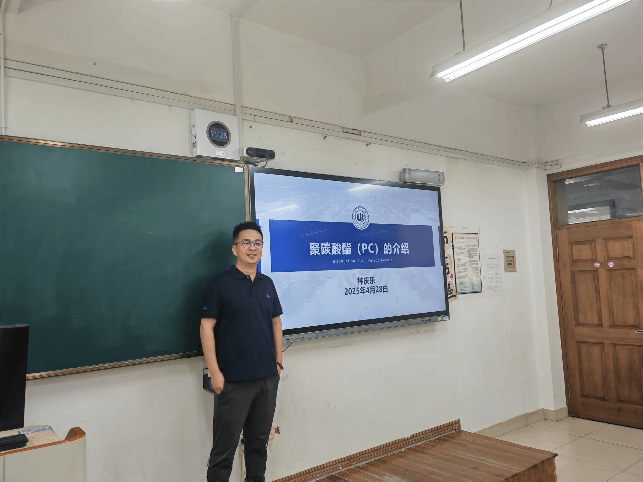 2025年4月28日上午,云顶7610线路检测“企业家进课堂”行业前沿课活动在南校区9号楼103教室成功举办。本次课程特邀云顶7610线路检测瓯江公司2006级材料专业优秀员工、温州泰鑫塑业有限公司总经理、宁波天维新材料有限公司营销总监林庆乐先生作为主讲嘉宾,他以《聚碳酸酯(PC)的介绍》为主题,为公司材料科学与工程专业的本科生带来了一场兼具学术深度与产业视野的精彩分享。