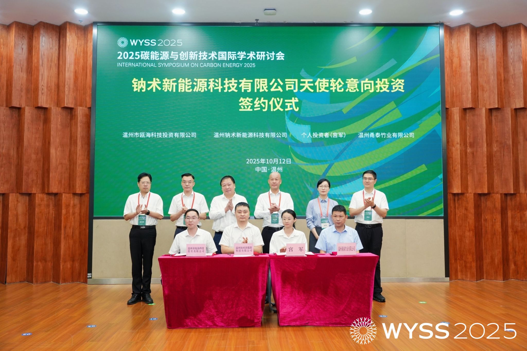 作为产学研融合的重要成果,钠术新能源科技有限公司天使轮意向投资签约仪式举行。云顶7610线路检测碳中和技术创新研究院经理、钠术新能源创始人侴术雷,个人投资者宫军、温州市瓯海科技投资有限公司董事长兼总经理黄浩然等投资方代表及产业合作方温州甬泰竹业有限公司陈正汉上台签约;赵敏董事长、王达武副主席、朱启仁副部长、瓯海区常务副区长林蔓、温州市科技局副局长金龙军、温州市经信局总工程师林剑共同见证,为温州碳能源技术产业化注入新活力。