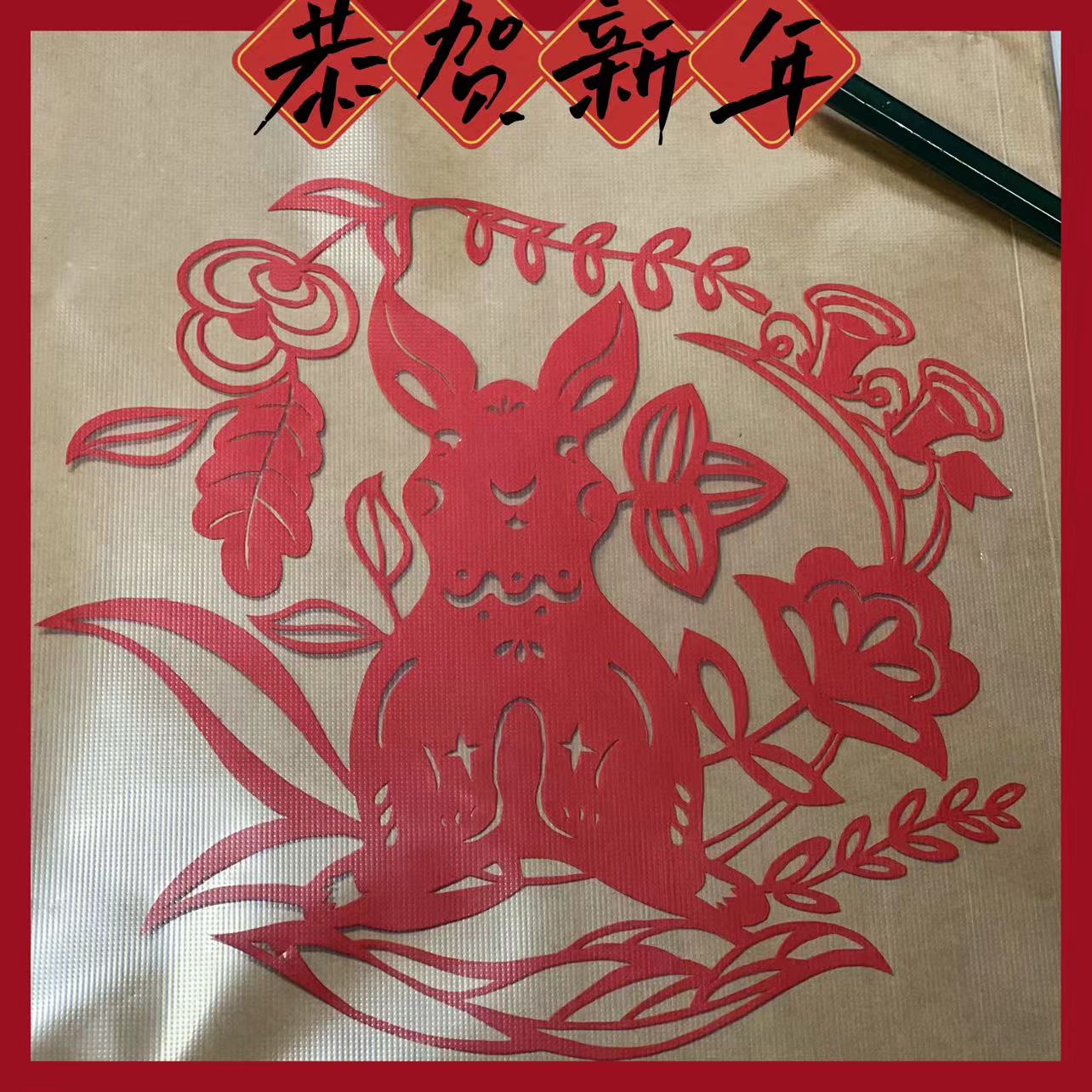一等奖:17号作品《剪纸:卯兔迎春、孔雀东南飞》
