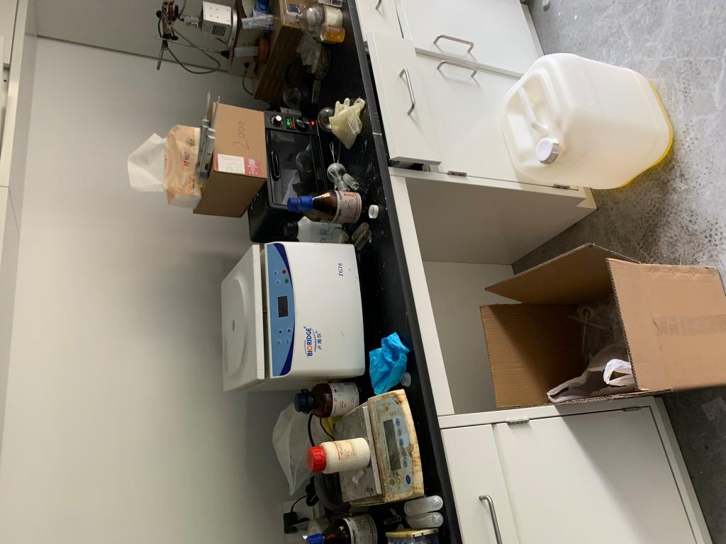 红外灯开着无人看守;饮料瓶装试剂但无标签;气瓶无标识 |