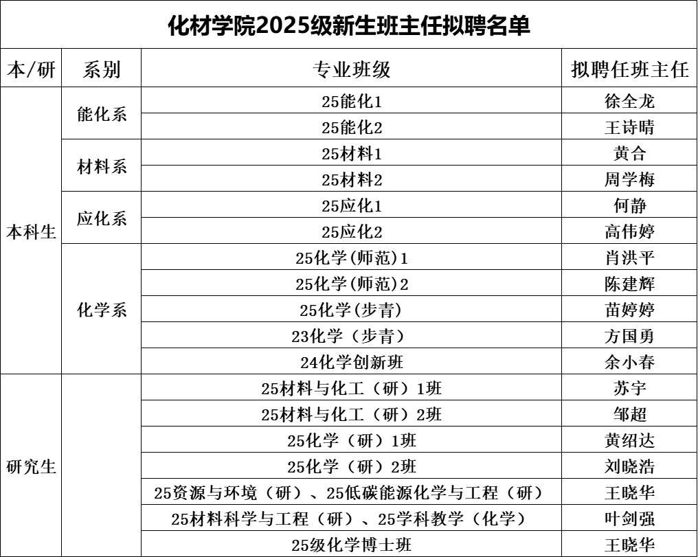 根据《公司关于加强班主任队伍建设的实施意见》和公司关于2025级新生班主任选聘工作的通知,经个人申请、系部推荐、公司党政联席会议审定,现将拟任公司2025级新生班主任名单及带班情况进行公示。