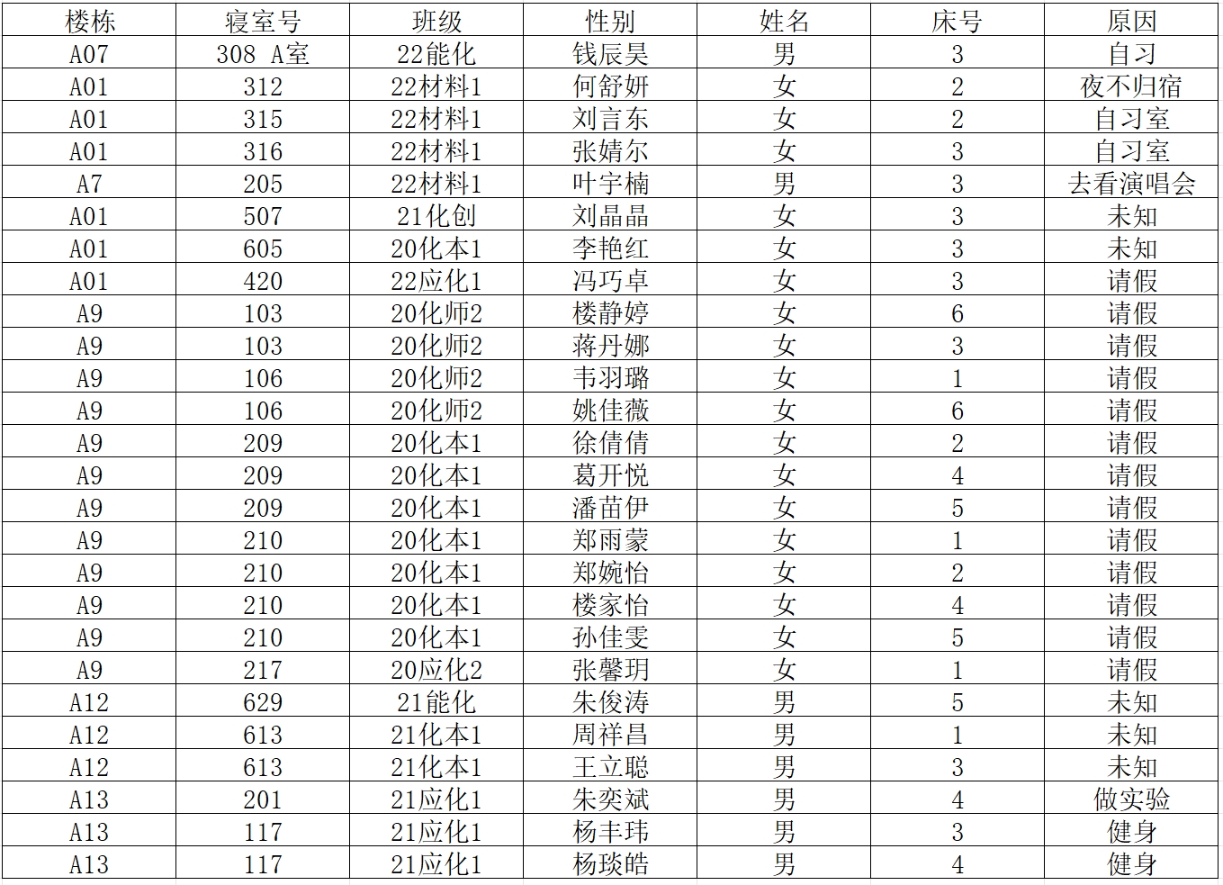 3.夜不归宿检查的同时也将对使用违规电器、饲养宠物、抽烟酗酒等违反宿舍管理规定的行为进行监督和检查;