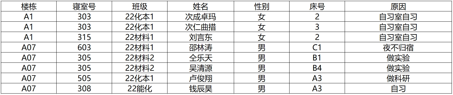 2.若在检查时间段内不在宿舍: